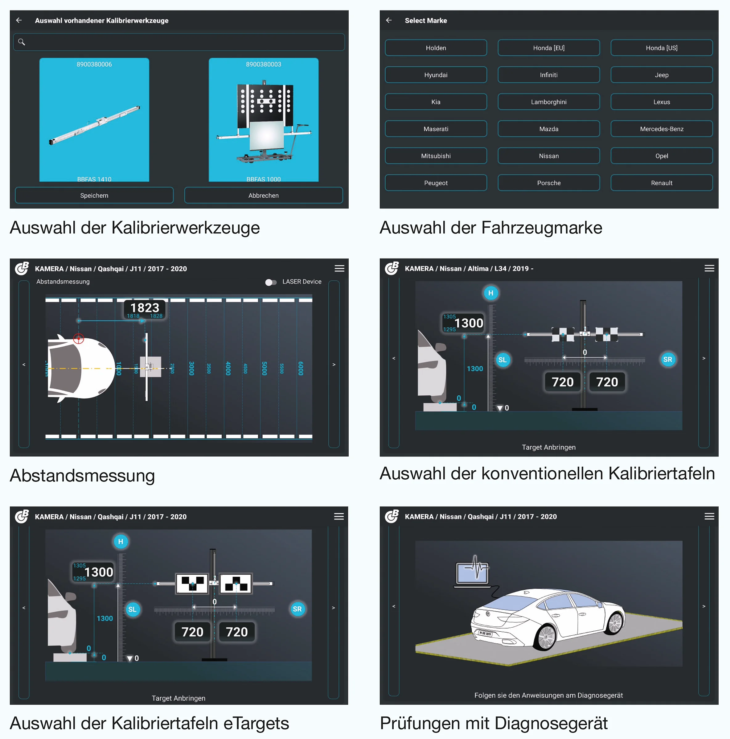 Q.mApp guides the user through the setup and positioning sequence for every OEM, regardless of static of dynamic calibration. Selecting a vehicle and model immediately provides you with: