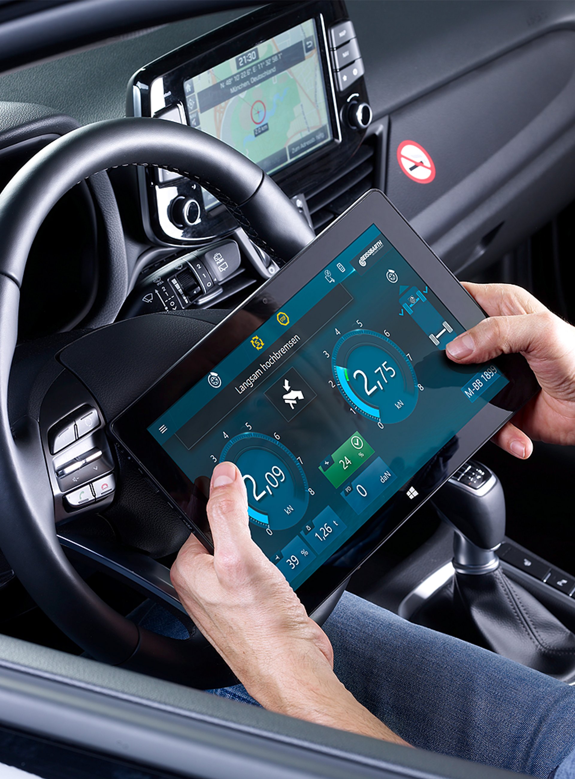 - Analoganzeigen mit integrierten LCD-Feldern als Ergänzung zur analoger Zeigerdarstellung: Achsgewicht, Abbremsung (in Prozent) und Bremskraftdifferenz werden somit digital dargestellt.