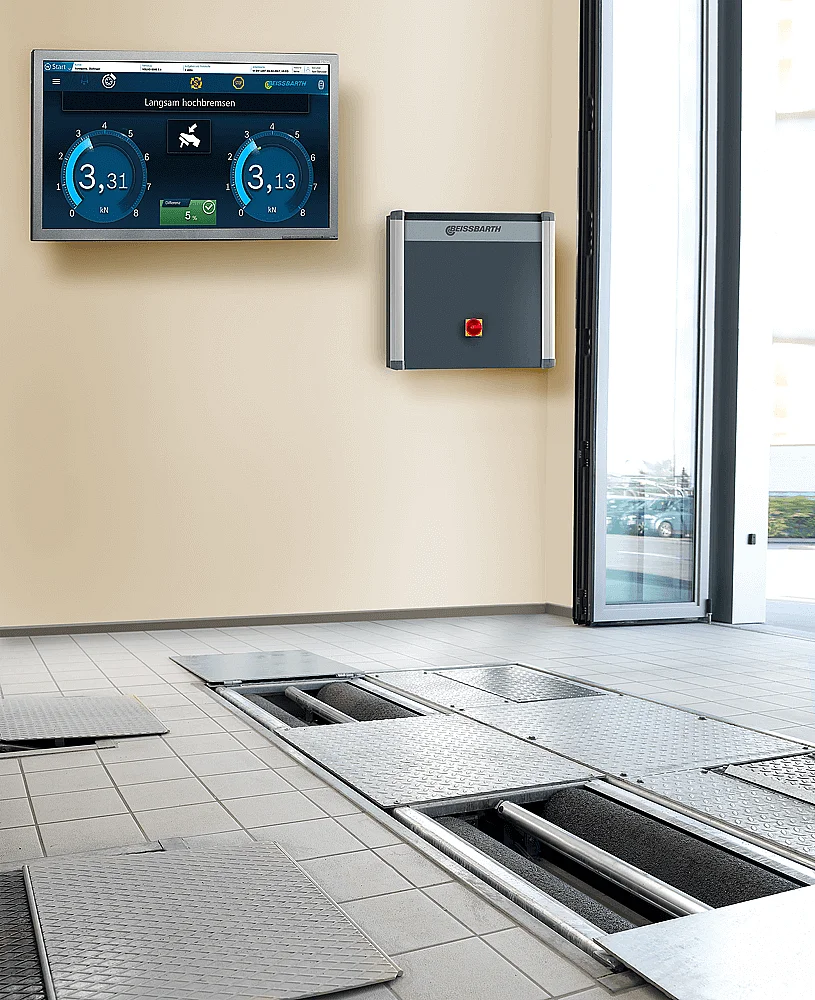 BD-Pkw-Bremsenprüfstände sind richtlinienkonform und für die Hauptuntersuchung geeignet. Gleichzeitig sind sie modulare Hilfsmittel bei Diagnosen, Reparatur- und Service-Arbeiten in der Werkstatt. Ganz nach Kundenanforderung kann der Bremsenprüfstand zur Prüfstraße mit Fahrwerkanalyse ausgebaut werden. Bedienung, Visualisierung und Bewertung von Prüfergebnissen erfolgt über Analoganzeige oder PC.