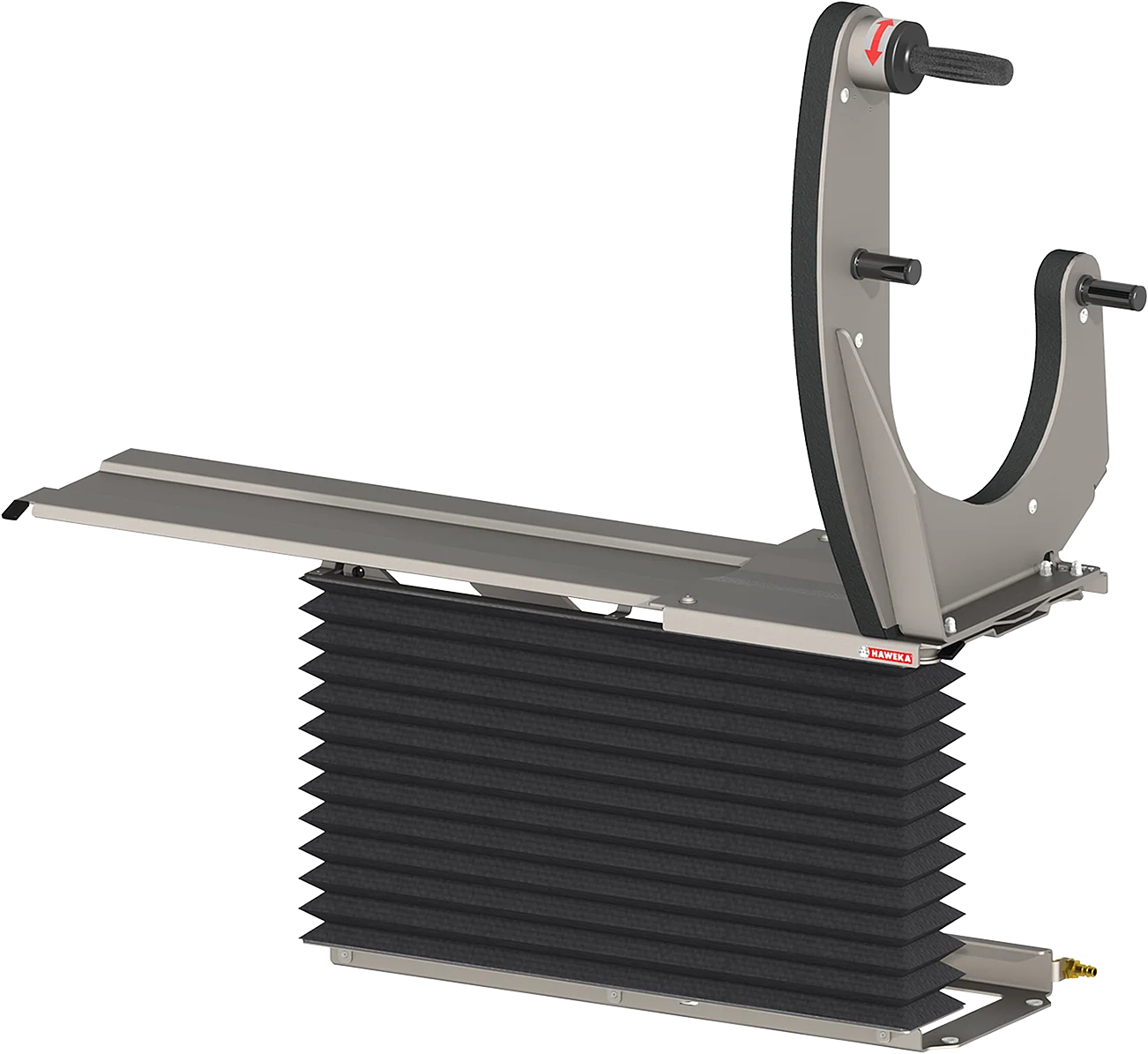 - Niedrige Aufbauhöhe zum einfachen Aufrollen schwerer Reifen
