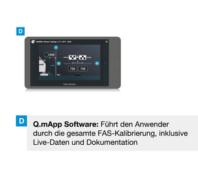 Q.DAS wird primär auf dem Achsmessplatz verwendet. Der Fokus liegt auf mit FAS ausgestatteten Fahrzeugen, die unmittelbar nach der Achsvermessung eine Rekalibrierung benötigen. Die FAS-Kalibrierung kann so direkt nach Einstellarbeiten am Fahrwerk ausgeführt werden, ohne das Fahrzeug zu bewegen oder Geräte umzubauen. Das spart Platz, Kosten und Laufwege.