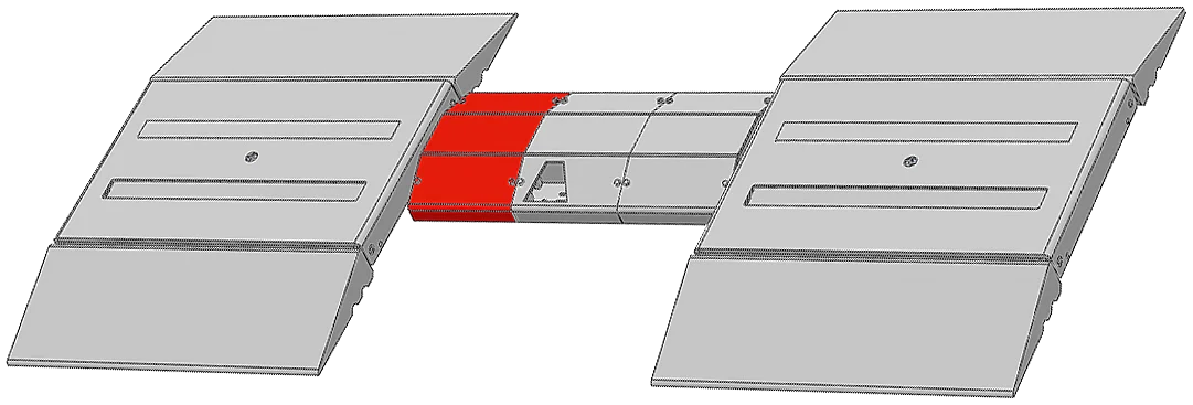 • Kabeltunnel zur Verwendung als Kabelbrücke für die Lücken zwischen ANPR-Kameragehäuse und Easy Tread-Modulen (links und rechts) sowie als Überfahrschutz für seitliche Kabelabgänge